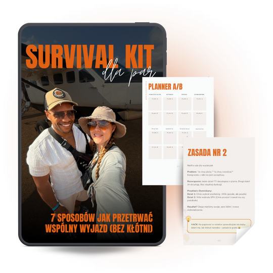 Odbierz darmowy Survival Kit dla par w podróży. 7 sposobów jak przetrwać wspólny wyjazd bez kłótni i wrócić z ochotą na kolejny. PDF trafi na Twoją skrzynkę w ciągu 2 minut.